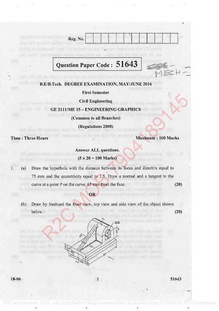 GE 2111- ANNA UNIVERSITY QUESTION PAPER ENGINEERING GRAPHICS REGULATION-2008 MAY/JUNE 2016